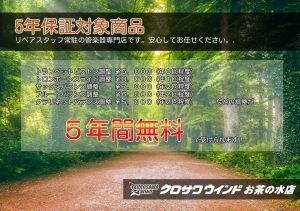 税別10万円以上で【当社保証(5年)】にてご案内しております。