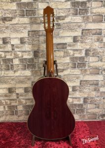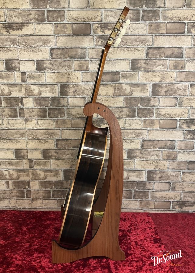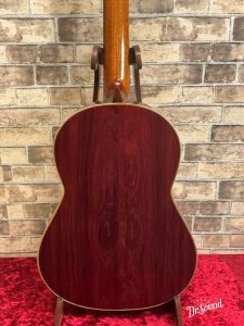 横・裏板に割れの修理歴があるほか、表面板や裏板に演奏キズ、打痕は散見されますが、使用にあたっての問題はございません。またギター支持具の吸盤跡が残っています。ブリッジはダブルホール仕様になっています。