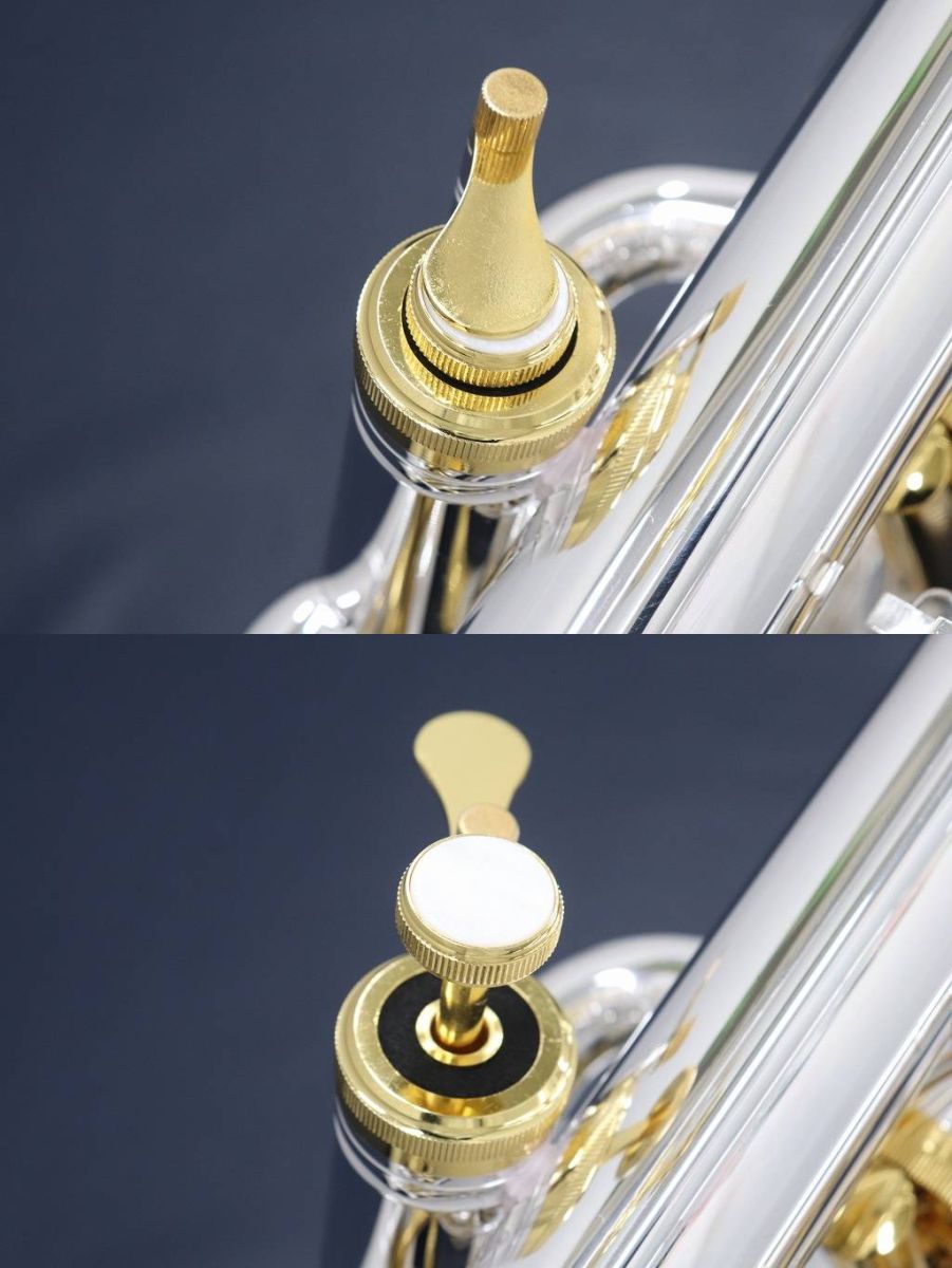 【トップキャップ・ピストン軸(ステム)・ボトムキャップ・抜差管・ウォーターキィ・*チューニングスライドトリガー:金メッキ仕上げ】となっています。