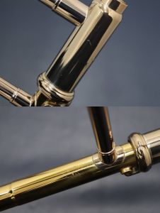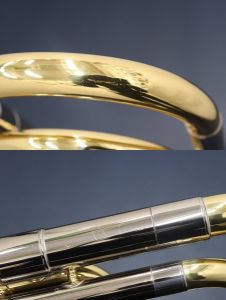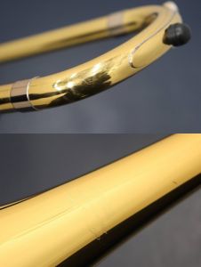 ベル側のジョイントのすぐ上や、チューニングスライド(B♭管)にはF管迂回管が装着されています。