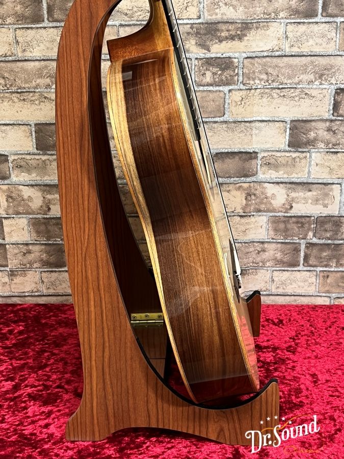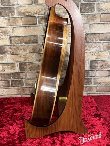 特徴的なロゼッタを表面板サウンドホールにあしらった外観は木材の色合いとも素敵なバランスとなり、このブランドのクラフトマンシップの一端を感じさせてくれる良質の仕上がり。