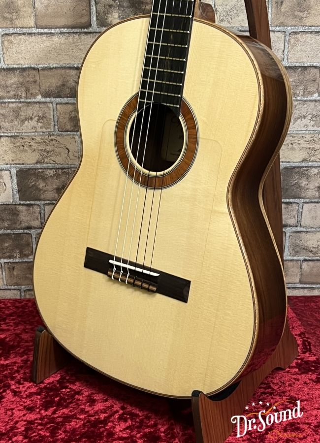 表面板は松、横裏板には美しいパタゴニアンローズウッドを使用したオール単板仕様。松材の引き締まった透明感のある響きとパタゴニアンローズウッドの硬質な響きのバランスが絶妙。本格的なフラメンコサウンドを堪能できる魅力的なモデル。