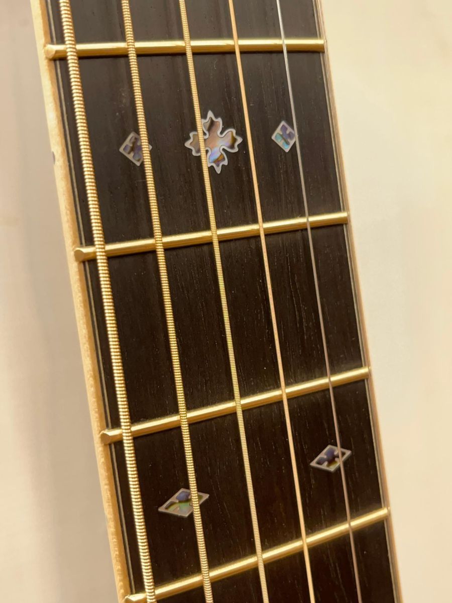 外観はヨーロピアンフレイムメイプルバインディング、ゴールドフレット、ゴールドチューナー等高級感のあるスペック、さらにStyle42はアヴァロンインレイにマザーオブパールの縁取りがされたヘッドのトーチインレイ、フィンガーボードスノーフレイクインレイ、ブリッジのスノーフレイクインレイも同様の縁取りがされ、カスタムモデルのような華やかなルックス。