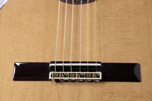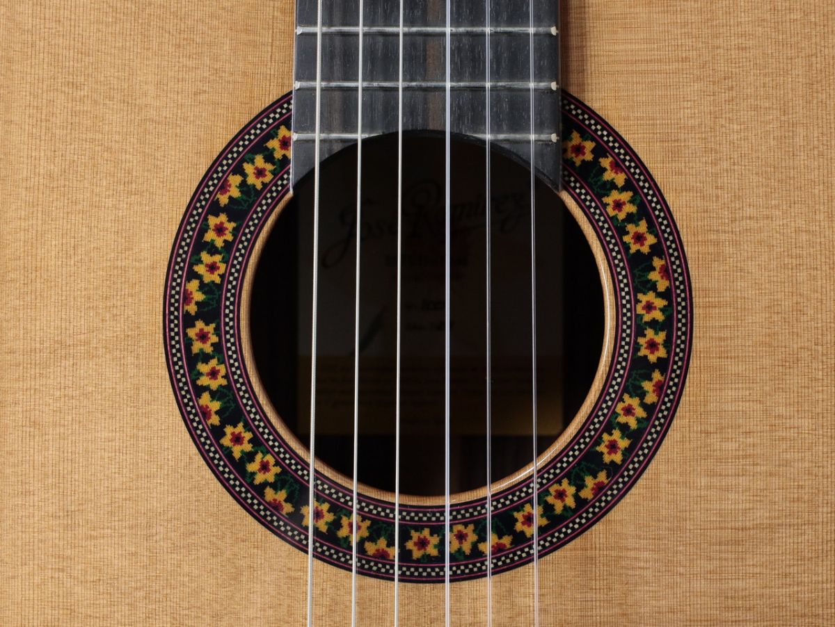 ブリッチとサウンドホールに施された装飾は、ホセ・ラミレス三世の娘で4世代目にあたるアマリア・ラミレスにより