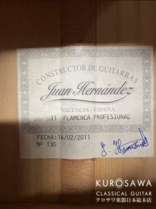 ホアン・エルナンデス 2011年製 Model:Flamenca Profesional 松・シープレス