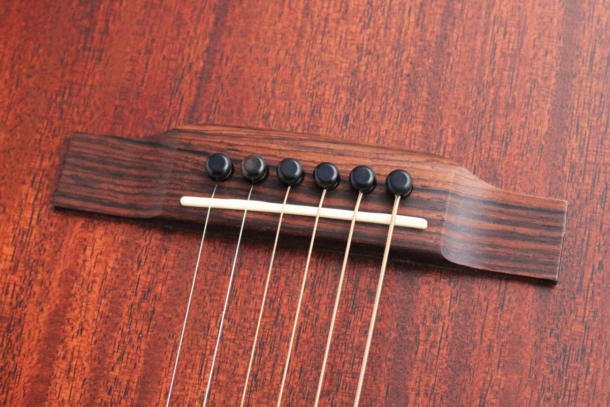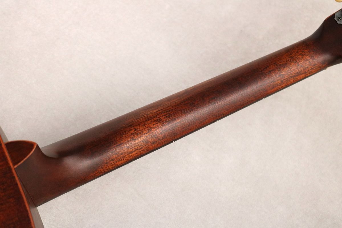 ネックは概ねストレート。12フレット上での弦高数値は6弦側で約2.3mm、1弦側で約1.6mmとやや低めのセッティングとなっておりますので、フィンガースタイルでの演奏がメインの方でも弾きやすい数値となっております。