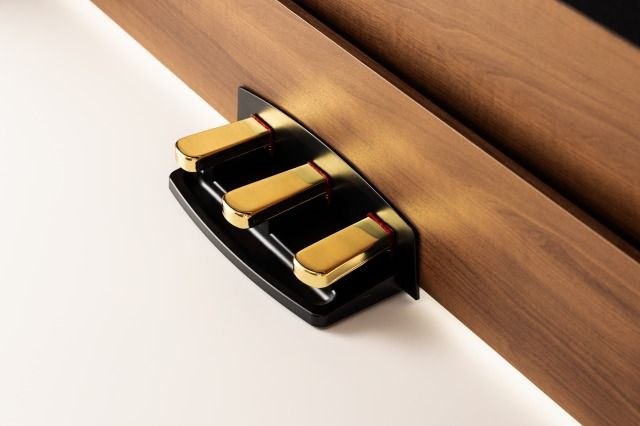 ピアノの演奏に欠かすことのできないペダルは、アコースティック・ピアノ同様にダンパーに加えソフト、ソステヌートを使うことができる3本ペダルを標準装備。