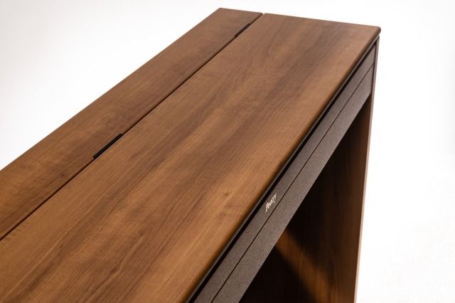 ピアノを使用しないときには表面が平らな一枚板のような形状になり、リビングやサロンなどの空間に自然に溶け込むスタイリッシュな印象を与えます。