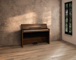 2つの個性的なピアノ音色と美しい木目調仕上げを受け継ぎつつ、全体のデザインを一新。