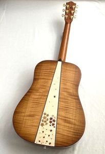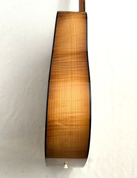 ボディサイド&バックには、フレイム杢が際立つ和材の山桜を使用。