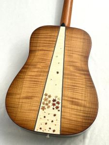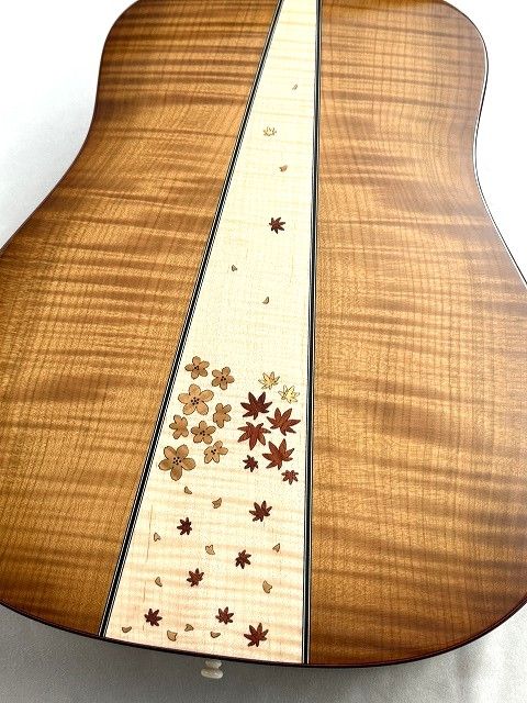 紅葉と桜が同時に楽しめる幻想的な風景、その美しいコントラストと儚げな魅力をギターのデザインに落とし込むことで、季節感を感じながらも一年を通して楽しめる仕上がりとなっております。