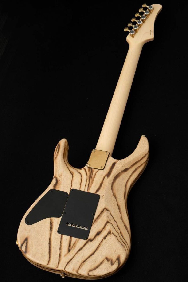 ボディバックには良い杢目で選定を行ったアッシュ材を採用。アッシュ材にバーナー加工を施し特徴的な杢目に沿って凹凸加工を施したマット塗装となっております。