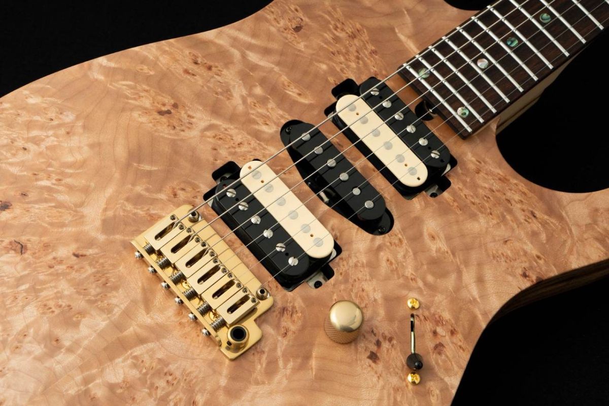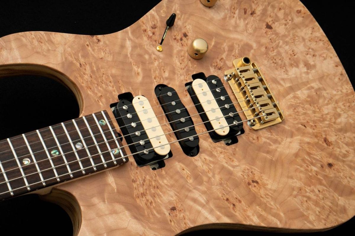 今回入荷したのはボディトップには選定を行った5AグレードのWaterfall Burl Mapleを採用。