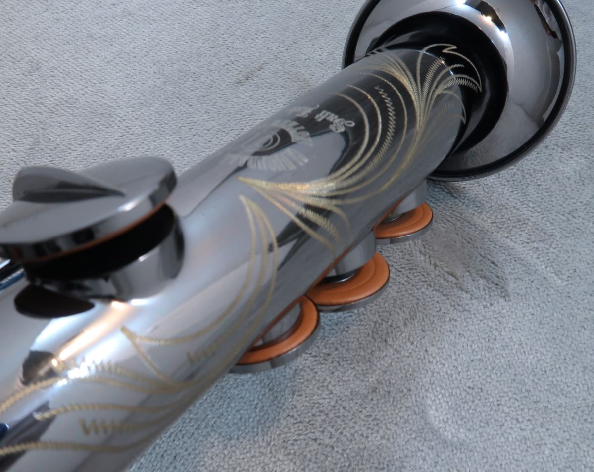 特許を持つ独自ネックや大口径のベル、各所に埋め込まれた準宝石など