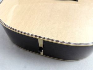 ブレーシングは、Xのクロス位置がサウンドホールに近いセミフォワードシフトを採用。