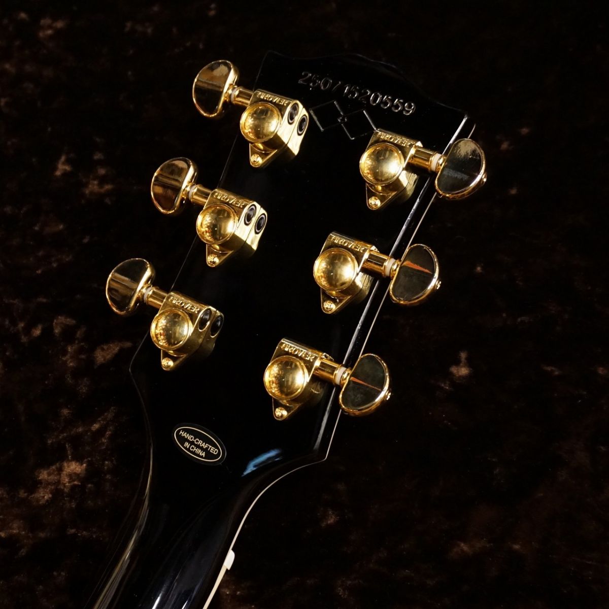 エピフォンはこの度、Gibson™ Custom Shopとのコラボレーションにより、エピフォンInspired by Gibson CustomラインアップのフラッグシップモデルとしてLes Paul™ Customをリリースします。ワンピースマホガニー・ネック、50年代のラウンディッド Cプロファイル、エボニー指板、マザーオブパール・ブロックインレイ等、「タキシード」と称されるLes Paul Customの気品ある仕様の数々を採用しています。ギブソンスタイルのオープンブック・ヘッドストックの上面には、マザーオブパール・スプリットダイヤモンド・インレイとエピフォン・ロゴのインレイがあしらわれ、ギア比18:1のGrover® Locking Rotomatic®チューナーを含むゴールドハードウェア等、目を引く仕様に溢れています。ソリッドマホガニー・ボディにメイプル・トップが貼られ、トーンに心地よい歯切れの良さが感じられるでしょう。ピックアップには、Gibson USA 490Rおよび498Tを搭載し、洗練されたサウンドをお楽しみいただけます。CTS®ポテンショメーター、Switchcraft®アウトプット・ジャック、ピックアップ・セレクター・スイッチ、およびMallory™コンデンサー等、ハンドワイヤリングにて結線されています。ヘッドストック裏にはInspired by Gibson Customのダブルダイヤモンド・ロゴが刻まれています。専用ブラックハードケースが付属します。