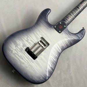 メイプルネックには美しい虎杢が揺れ動いており、昨今サテンフィニッシュが多い流れの中であえてのグロスフィニッシュを採用。高級感抜群です。