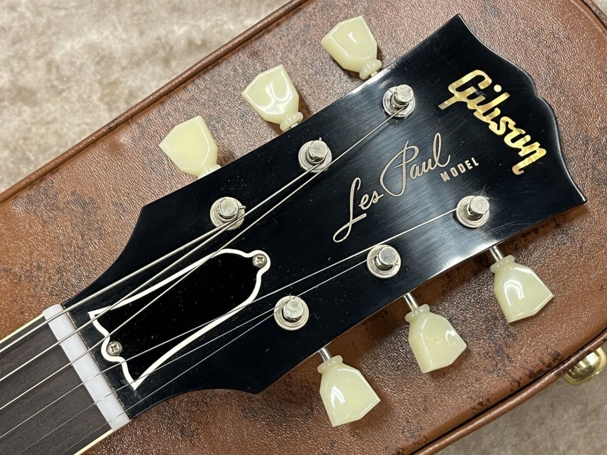 その他にも書体や色味が見直されたヘッドのGibsonロゴとLes Paul MODELのシルクスクリーンや、指板のディッシュインレイの色味などGibsonのリイシュー史上最も再現度の高い仕上がりとなっております。