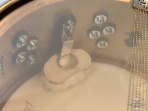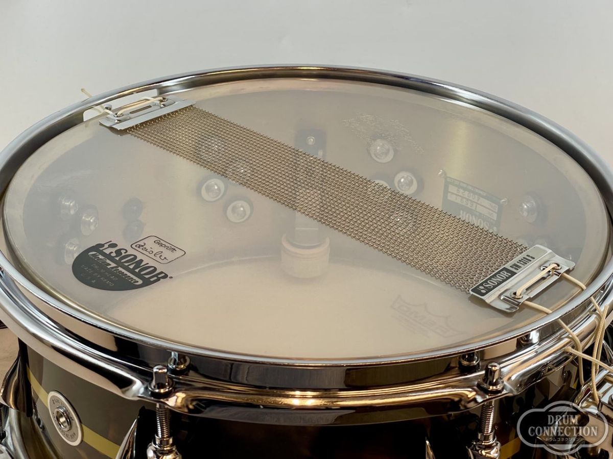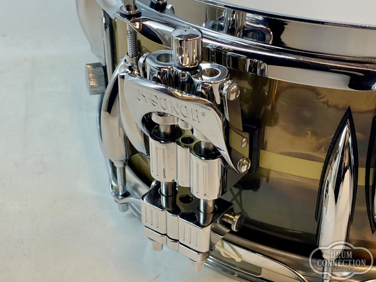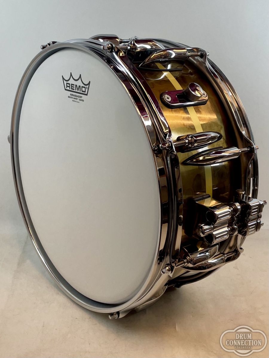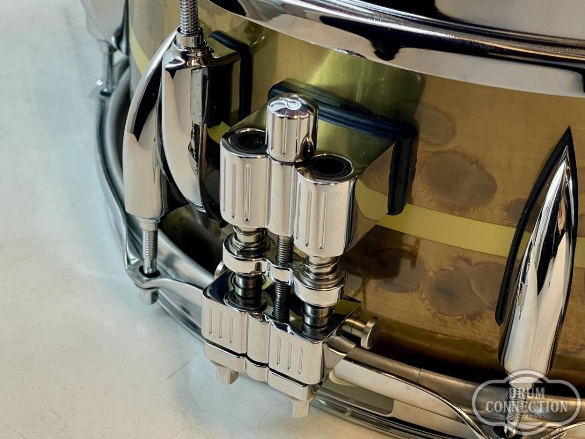 1.2mm厚のブラス板に、ヴィンテージブラス仕上げを施し、ウッドシェルと同じくティアドロップラグを採用しています。そのサウンドは、ブラス特有の暖かみと丸みがあり、気持ちの良い倍音がエッジのリムショットを強調しています。また、前モデルのウッドシェルから正確にコピーした寸法は、ボトムエンドと響き線の感度を向上させています。ベニーがこれまでに出会ってきた中でも、最高のお気に入りのメタルシェルのスネアドラムが誕生しました。