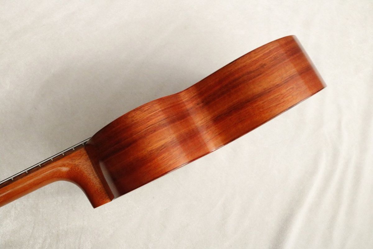 KAMAKA HF-36は、1959年にサム・カマカ・ジュニアによって設計された特別なモデル。最初のHF-36はハワイの州昇格を記念し、ハワイ最後の君主であるリリウオカラニ女王に敬意を表して製作されたことから、"リリウ(Liliu)" の愛称でも呼ばれているようです。1978年には、ハワイからホワイトハウスへの地域贈呈品として選ばれ、KAMAKA、ハワイ、ウクレレの歴史の中でも重要なモデルでもあります。1弦にLow-A、3弦にHigh-Cが追加された独創的な構成により、4弦や8弦ウクレレとは一線を画す、華やかで音量豊かな響きを実現しています。ギターとのセッションでも調和しやすく、重なり合う周波数が生み出すハーモニックで豊かなサウンドは、まるでウクレレの合唱団のような美しさです。製造本数のすくなさから現物を見る機会も少ないモデルですが、特にこの個体は2016年製のKAMAKA 100周年を記念した特別なロゴが入った個体。大注目の一本です!