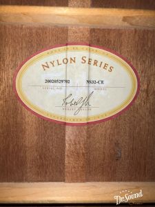 今回入荷は2002年製のNS32-CE、ボディサイズはTaylorの中で少し小ぶりなグランド・コンサートサイズ、表板松(Spruce)、横裏板サペリ(Sapele)のオール単板仕様です。