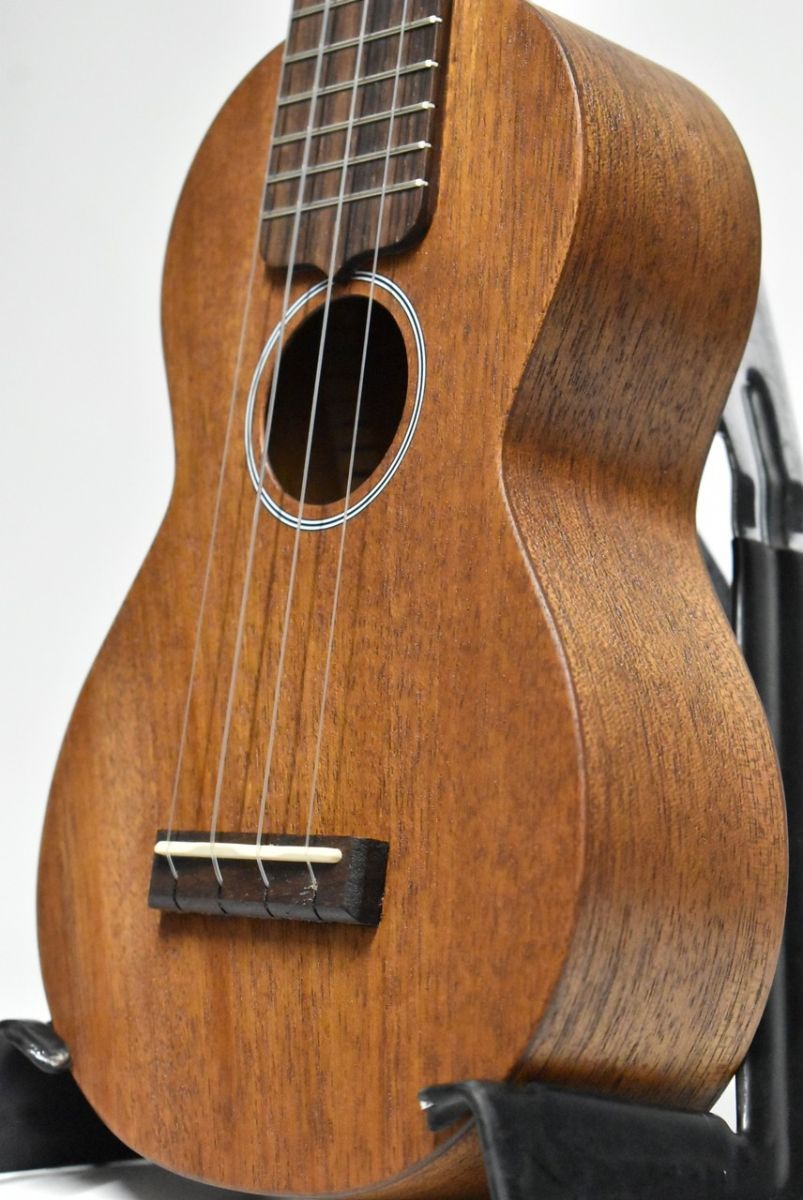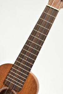 鳴りの良いマホガニー総単板ボディ、小ぶりで軽量なソプラノモデル。