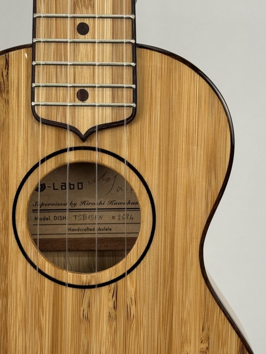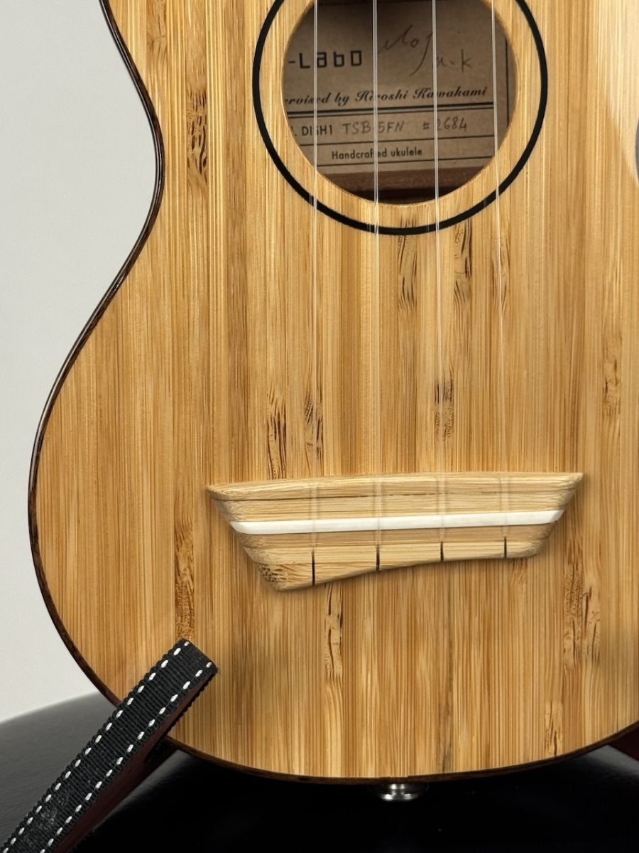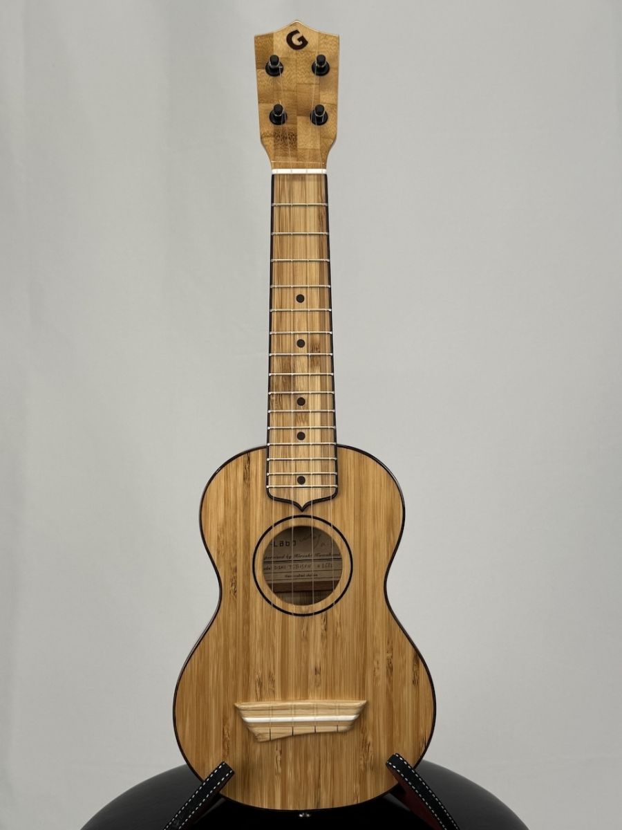 今回入荷は薄型ボディのいわゆるウスレレの竹バージョンのウクレレです。