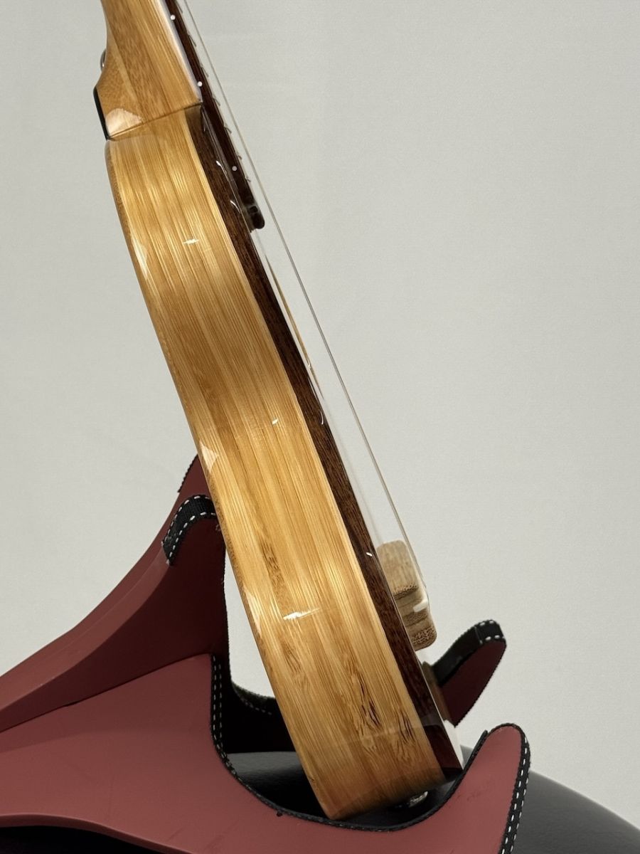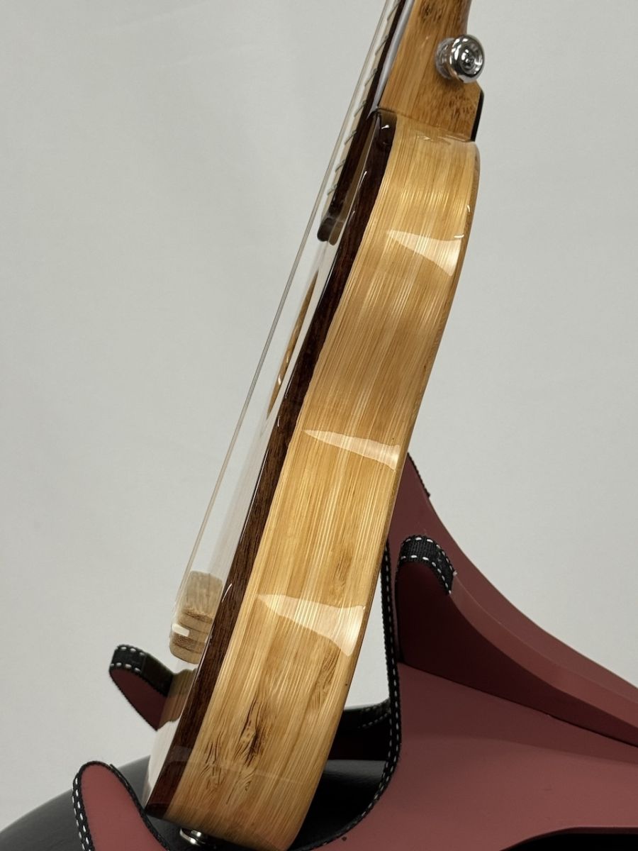 ボディ、ヘッド、ブリッジ、指板に至るまで竹が使用されており、