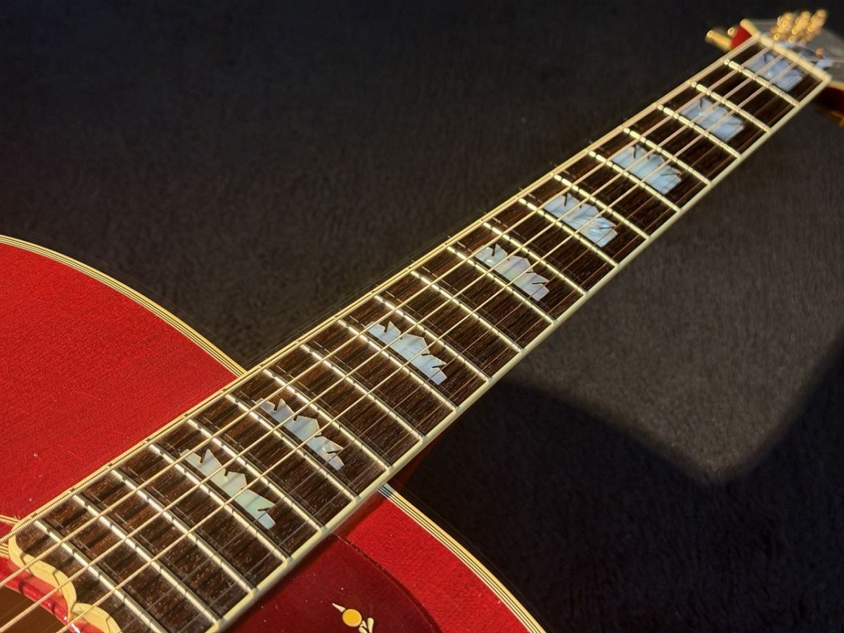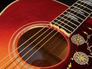 Led Zeppelin初期のレコーディングにおいて使用頻度の高かった1964年製J-200。ヴィンテージ市場において、この時期のチェリーサンバーストカラーのJ-200はあまり見掛けません。