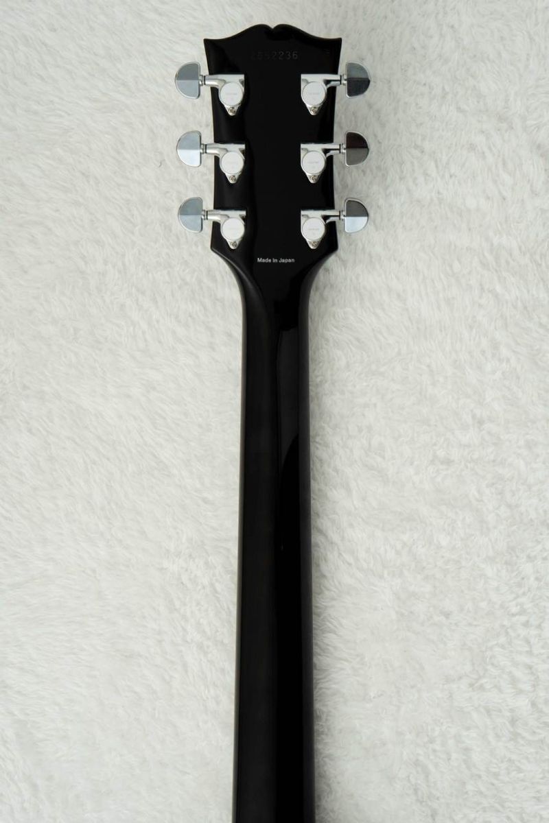 こちらのモデルは、通常指板はローズウッド指板となっておりますが、カスタムタイプの特徴であるエボニー指板を採用。