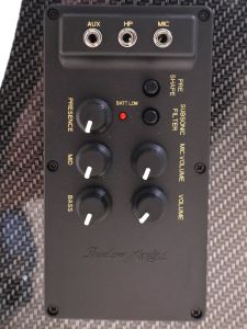 ドイツの老舗メーカー「Shadow」のプリアンプとピックアップがインストールされております。単三電池2本で駆動し、ヘッドフォン端子とAUX端子も搭載しているため、普段エレキベースをプレイされている方でも自宅練習がしやすく、とても扱いやすく演奏性に優れているので、アップライト・ベースを始められる方やすでにコントラバスをプレイされている方に扱いやすい一本となっております。