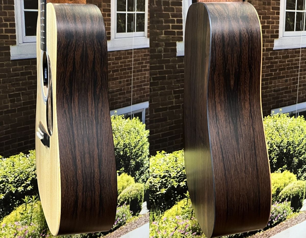 戦前のマーティンよりもやや広めのカスタム・ナット幅(約43.7mm)とモディファイド・ロー・オーバルのサテン・ネックにより、弾き心地とスピードが向上しており、ネックの上下に機敏さを求めるプレイヤーに理想的なモデルです。