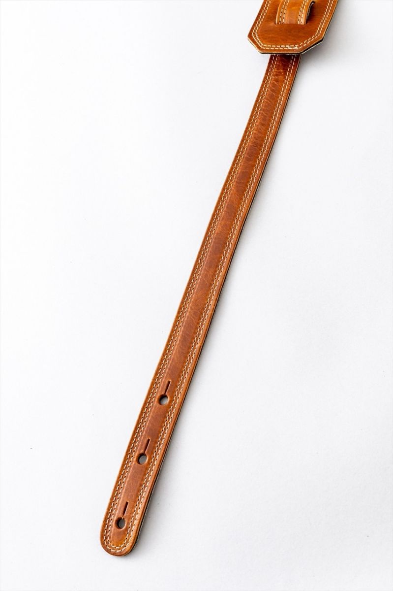 特殊な素材を使用することで、演奏者のストレスを抑えようとしているストラップもありますが、やはりきちんと職人の手で加工し、丁寧に作られたものが演奏者に与える安心感にはかないませんし、見た目もやはり革ならではという良さ、ハンドメイドの楽器同様、使い込めば使い込む程味が出てくる、という点でも本物の革に勝るものはありません。