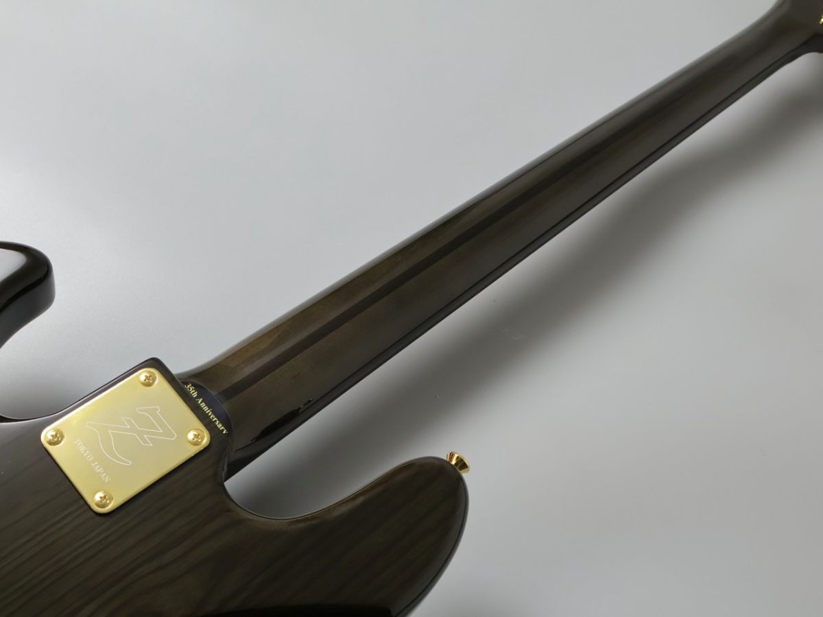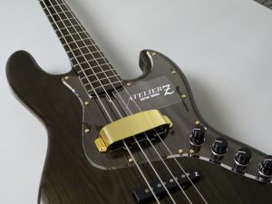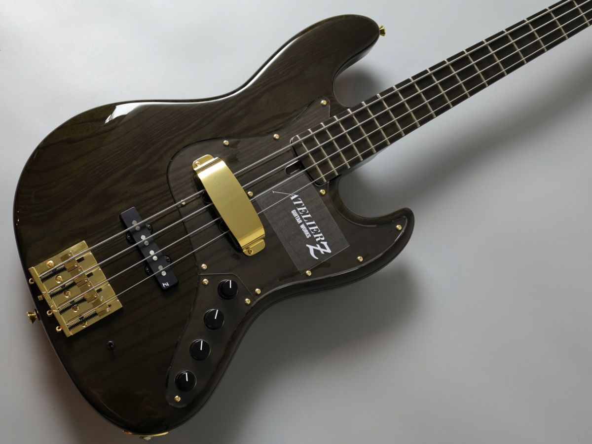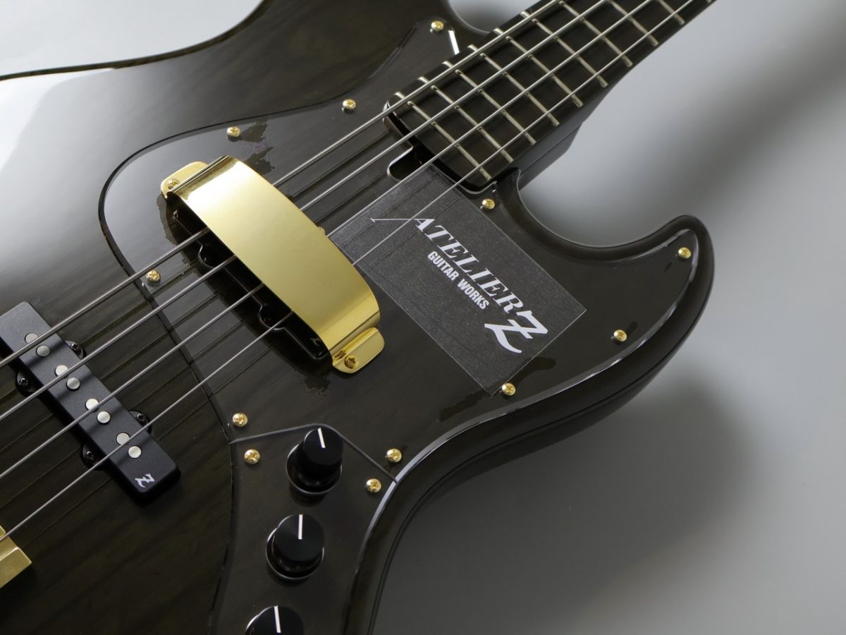 Atelier Z M#245 Customは、長年にわたり多くのプロベーシストに愛用されてきた、そのサウンドと演奏性を高次元で融合させたベースギターです。特にこのモデルは、美しいオール・トランスペアレント・ブラック・フィニッシュと、木目の美しさを際立たせるクリアな外観が、ステージ上で圧倒的な存在感を放ちます。