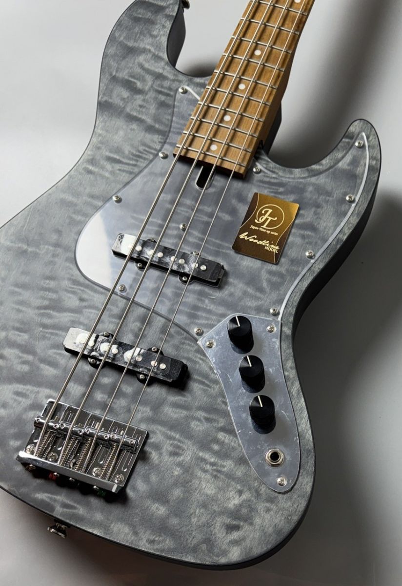 WLモデルは、Handmade Seriesで培ったWOODLINEの持つディンキーシェイプのボディを継承し、一般的なJBタイプのエレキベースより少し小さくなっているので、どんな方でも弾きやすくなってます。ボディトップには美しい杢目が目を引くキルトメイプル材を採用し、ボディバックには中低音が豊かなナトー材、ネック&指板には、高温で加熱処理をして、木材の中の水分や油分を一定数量に揮発させることにより剛性を高め、高級機種で採用される事の多いローステッドメイプル材が使用されております。