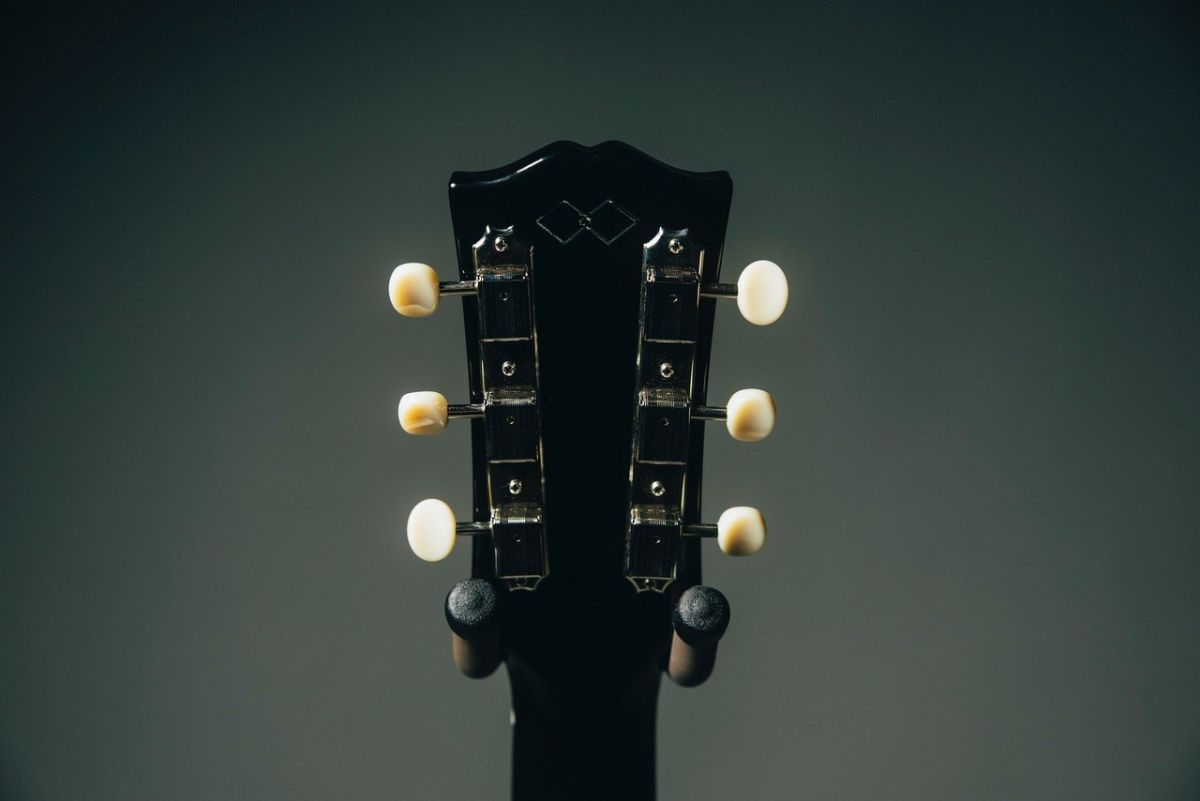 『Epiphone Inspired By Gibson Custom Kazuyoshi Saito J-45 2026』の特徴として、“オープンブック・ヘッドストック” と呼ばれるギブソンと同じヘッド形状があげられます。さらに、斉藤氏のサインがプリントされたトラスロッドカバーや、ギブソンと同様に3連タイプでクリーム色のオーヴァルノブ付きチューナーなど、一見すると斉藤氏愛用のギブソンJ-45と見分けがつかない程の再現性を持ちます。