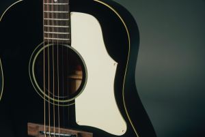 斉藤氏のJ-45のトレードマークとなっている、光沢を帯びたグロス・フィニッシュのエボニー(黒)のボディをはじめ、サウンドホール・リング位置の再現、ギブソンと同じダミーネジまで再現した60年代スタイルのクリーム・ピックガードなど、斉藤氏の拘りが詰まったギブソンJ-45に限りなく近づけたルックスを実現しました。