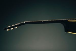 ワンピースのマホガニー・ネックは、本モデル用に開発されたアーティスト・プロファイルで、トップ材と同様に “サーマリーエイジド加工” が施され、ローズウッド指板と共に高い演奏性を備えます。ローズウッドのブリッジベースは、オリジナルのアジャスタブル(可変式)ではなく固定式の仕様となっており、斉藤氏のギブソンと同じくベリーダウンのデザインを採用しています。