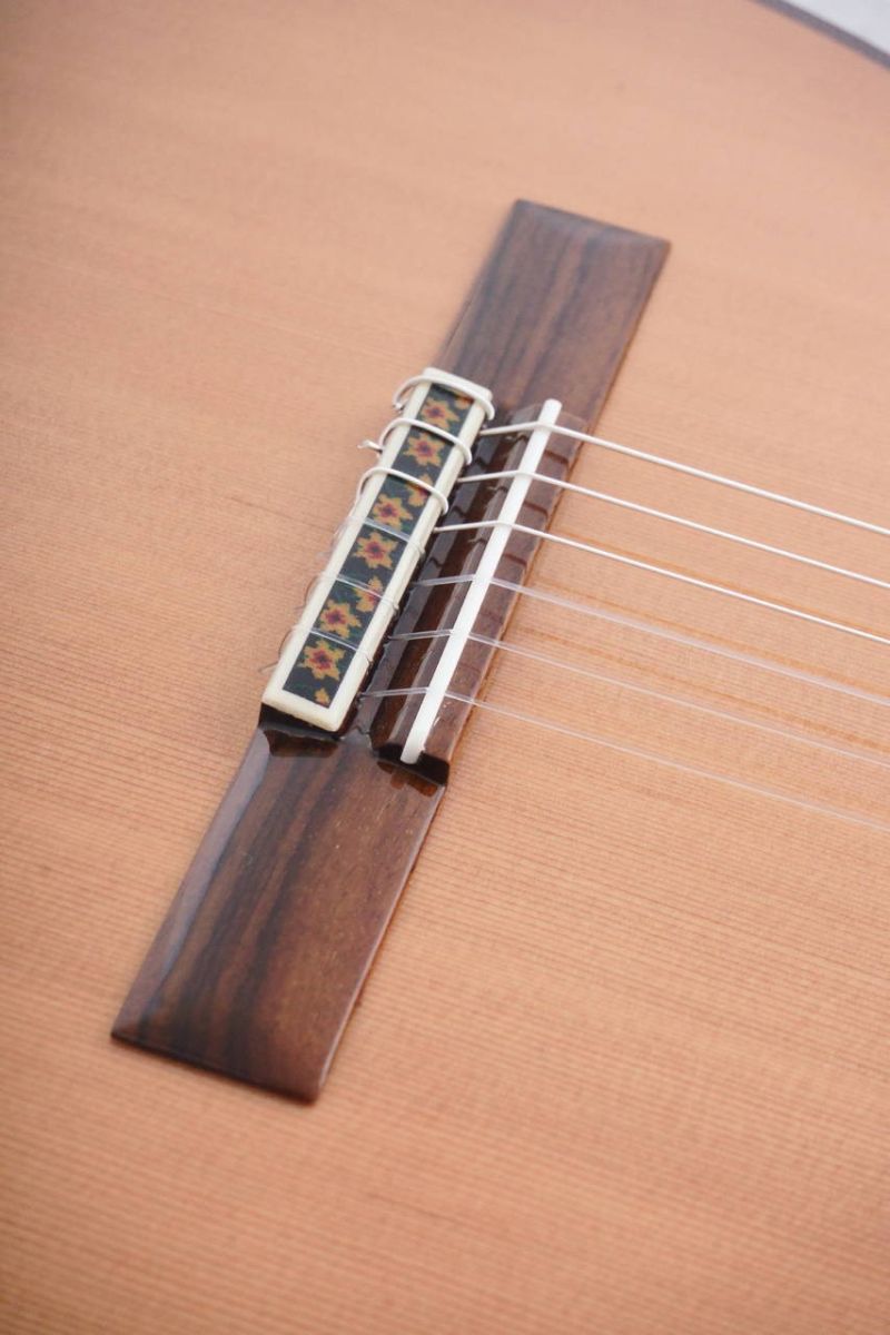 ブリッジとサウンドホールに施された装飾はホセ・ラミレス1世からか数えて5代目となるアマリア・ラミレス自ら考案したもので、女性ならではの花をあしらったエレガントなデザインとなっております。