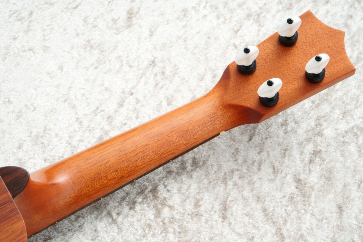 ネックやナットの幅などもコアロハやカニレアといった大手ハワイ製ブランドと比べても細めであり、日本人の手に馴染む程よい厚みのネックですので練習や演奏もしやすいです。