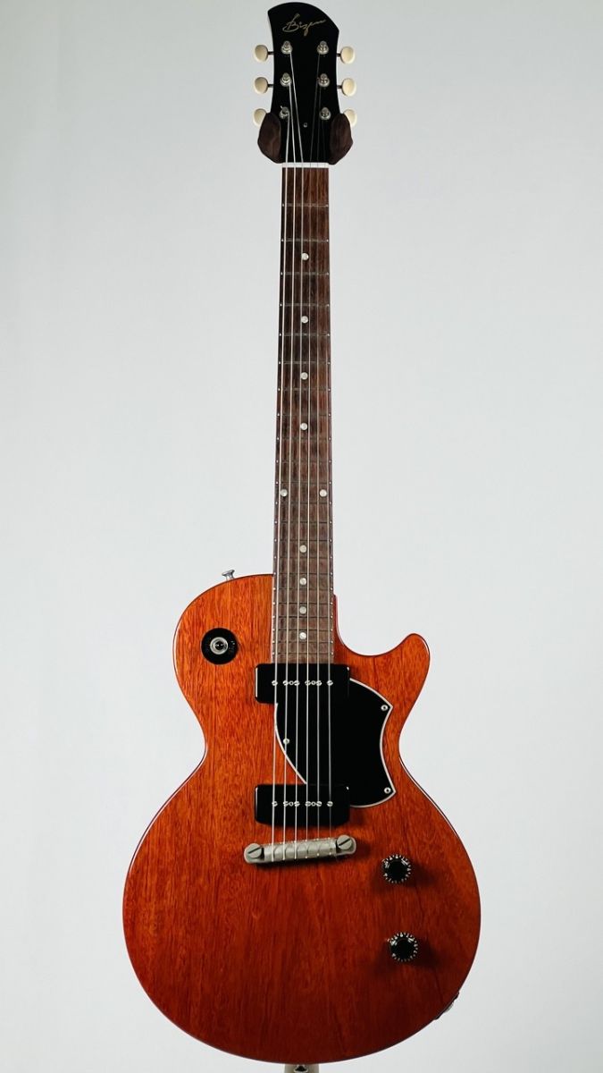 本モデルはBizen Worksが展開する「BURNED」シリーズの中でも、メイプルトップを排しフラットトップの1Pホンジュラス・マホガニーをボディに使用した「BURNED SPL」です。