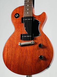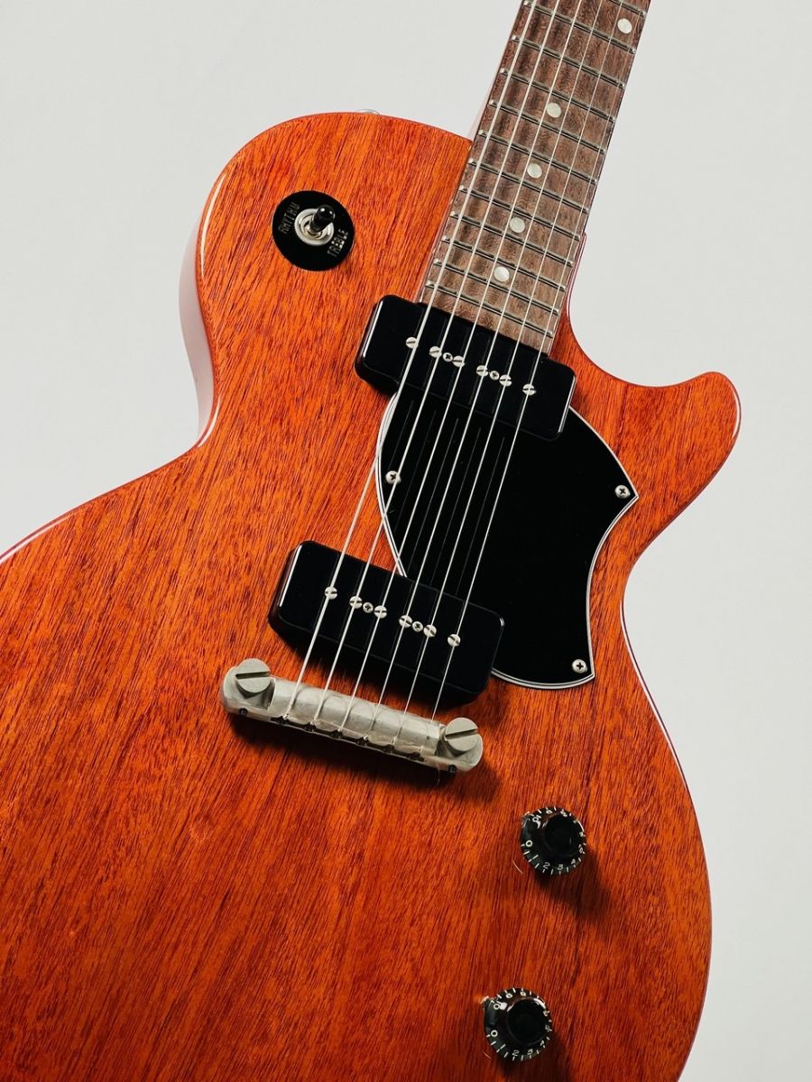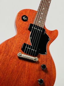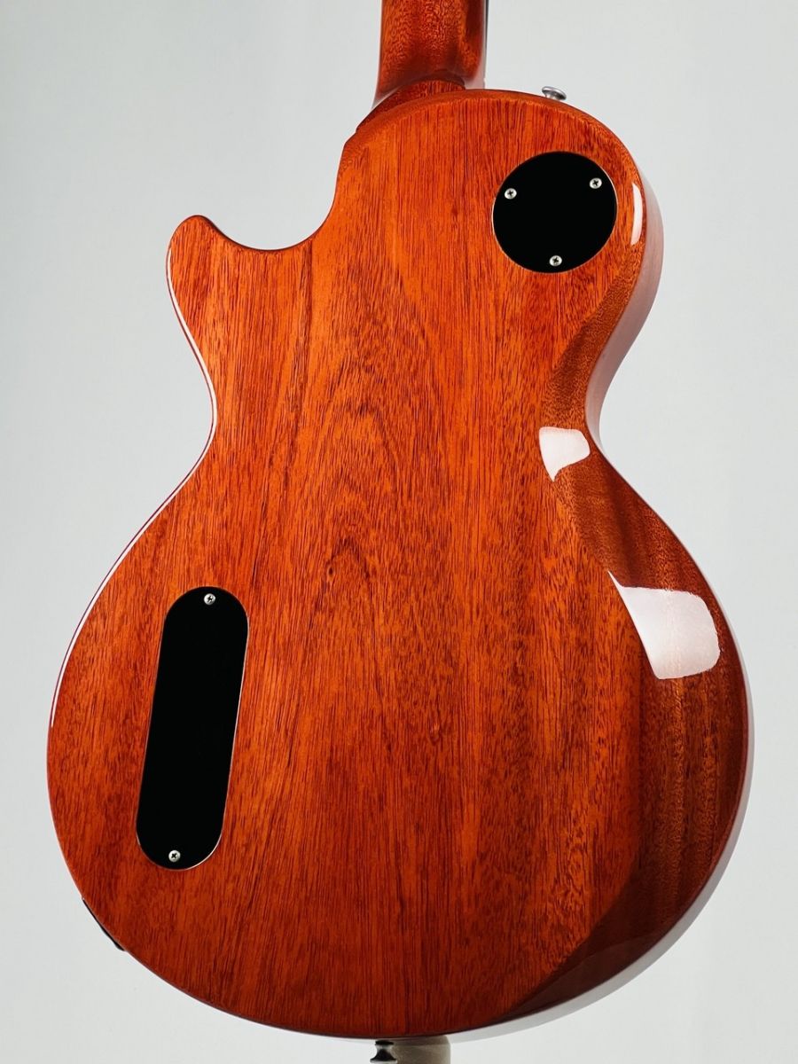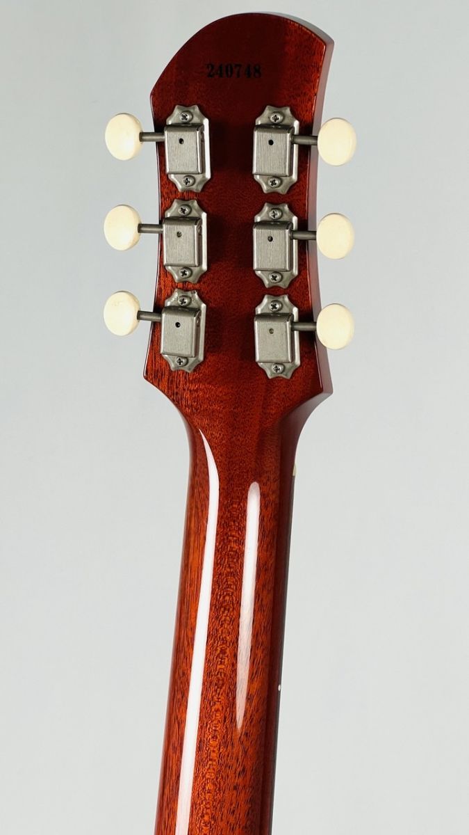 カラーリングにはレッドフィラーで着色されたチェリーレッドを採用し、ホンジュラス・マホガニーの杢が見えるシースルーの仕上がりが抜群の雰囲気を放っています。