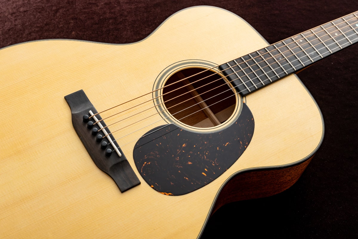 ハンドシェイプ・スキャロップド・ブレーシングによる反応の良いサウンドは、フィンガーピッキングからストロークまで幅広く対応。べっこう柄のバインディングがスタイル18らしい風格を添える、特別な1本。