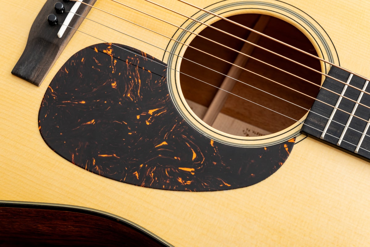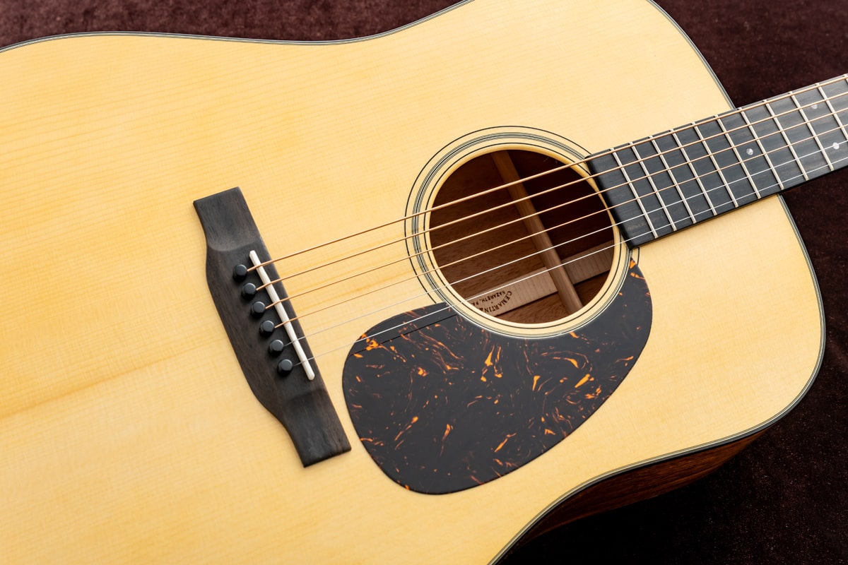 ゴールデンエラ・スタイルのハンドシェイプ・スキャロップド・フォワードシフテッド・ブレーシングを採用し、豊かな鳴りと力強い音量を実現。べっこう柄のバインディングとクラシカルなヘッドロゴが、スタイル18の伝統美を引き立てる特別なD-18。