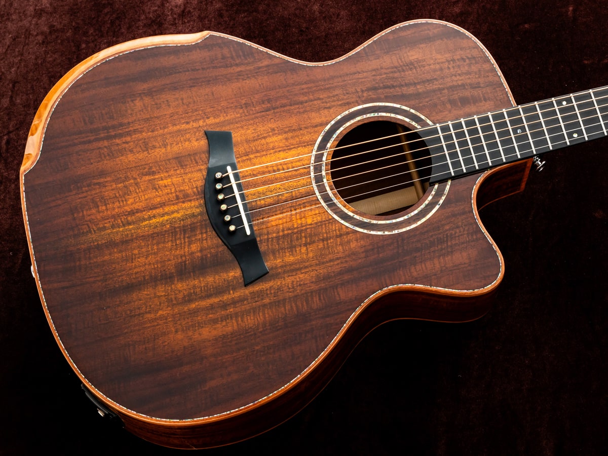 トップはスプルース単板、サイド&バックはマホガニーのベベルド・アームレストを施したカッタウェイボディ。ピックアップ付きでより手軽にあらゆるプレイスタイルにマッチするモデル。